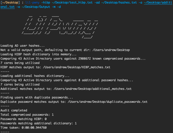 This can be a powerful tool for carrying out a one off audit of the state of passwords being used in an environment. From the blue team side of things, it is even more powerful when automated to run regularly and combined with education for the users who return compromised passwords. After all, this data is useless until you do something with it.