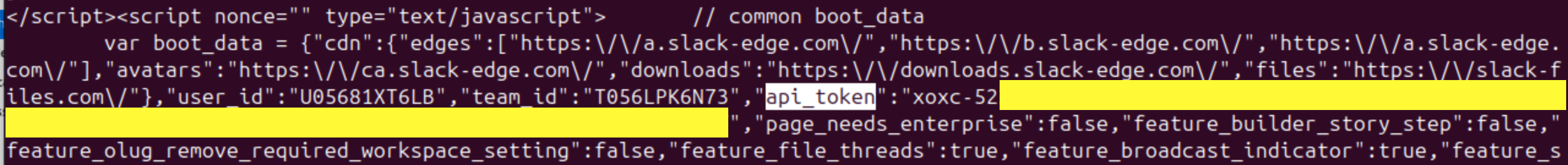 xoxc-token) - Other metadata describing the authenticating user, workspace(s) and permissions
