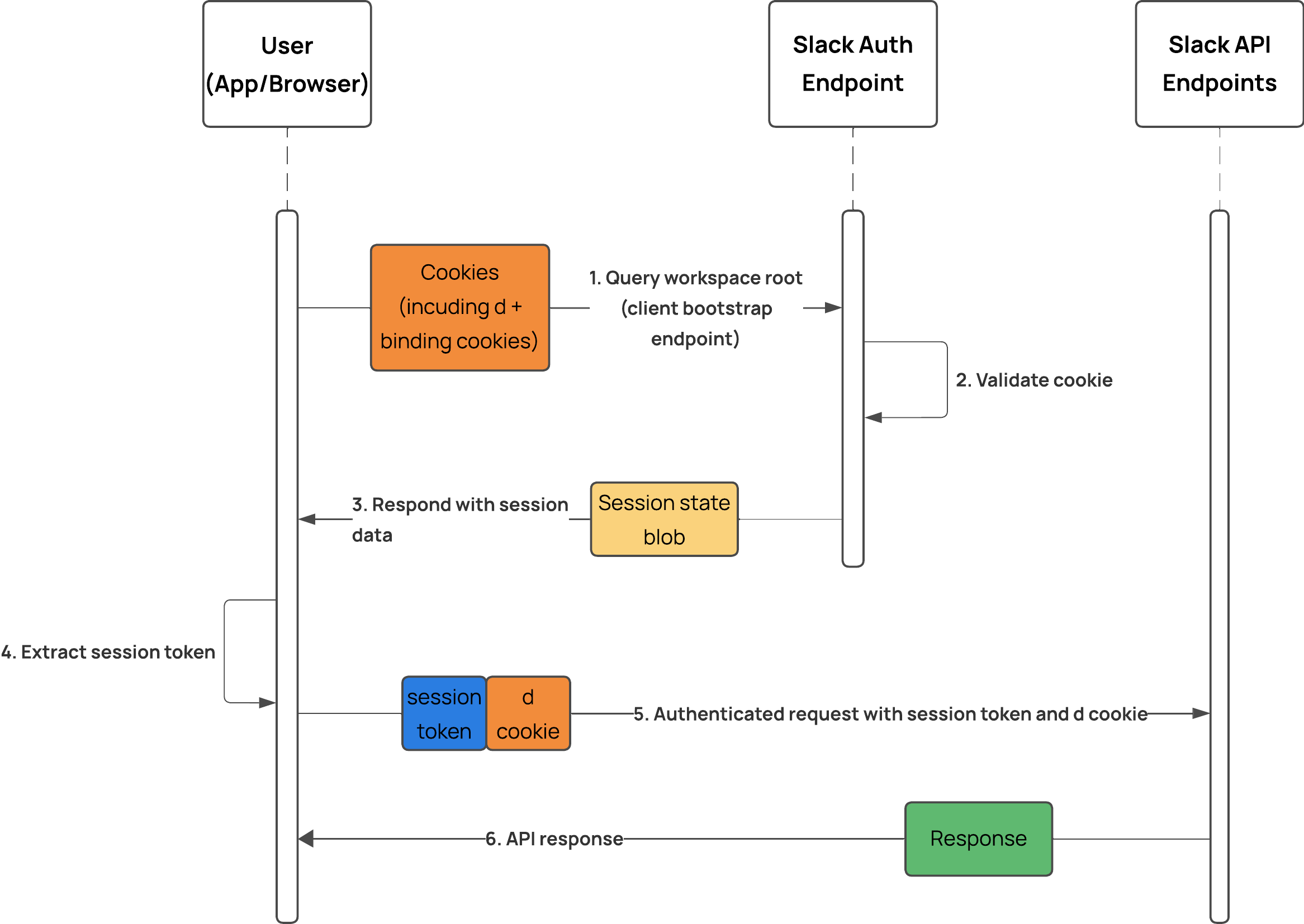 Slack’s authentication is built around sessions, not just a single token. When you log into Slack (via browser or app) the Slack client establishes a session made up of three components: