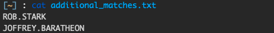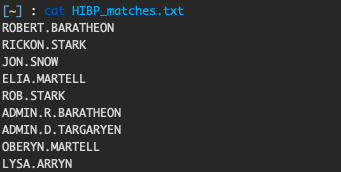 I also have a suspicion that some of Westeros Inc’s users may be using insecure passwords related to the company, which may not be in the HIBP list, so I have created the following file with some passwords of my own to search for: