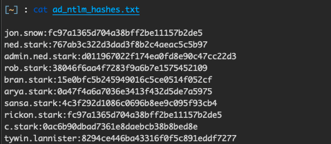 I’ve got the NTLM hashes of passwords from users from the Westeros domain: